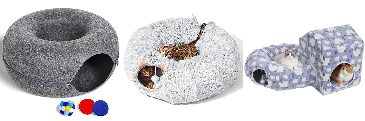 1. Large Cat Tunnel Bed for Indoor Cats with 3 Toys