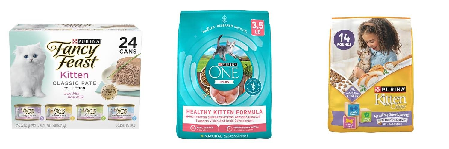 - The canned kitten food is skillfully crafted in Purina’s own U.S. facilities.