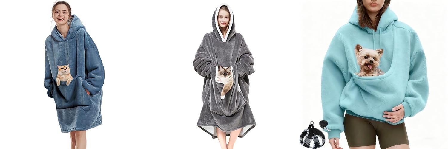 - The giant pocket is amazing! You can stash your phone, a book, snacks, or even give your pet a warm hug.