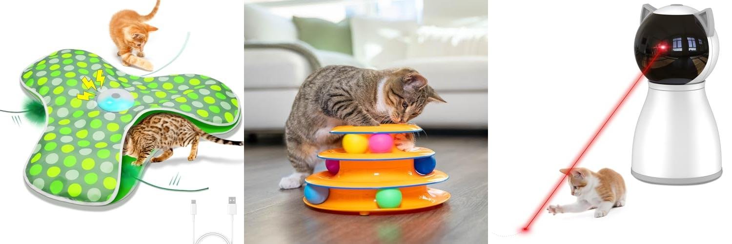 • Solo Play: Toys like puzzle feeders or automated laser pointers allow your cat to entertain themselves when you’re busy. These toys challenge their minds and keep them from getting bored.