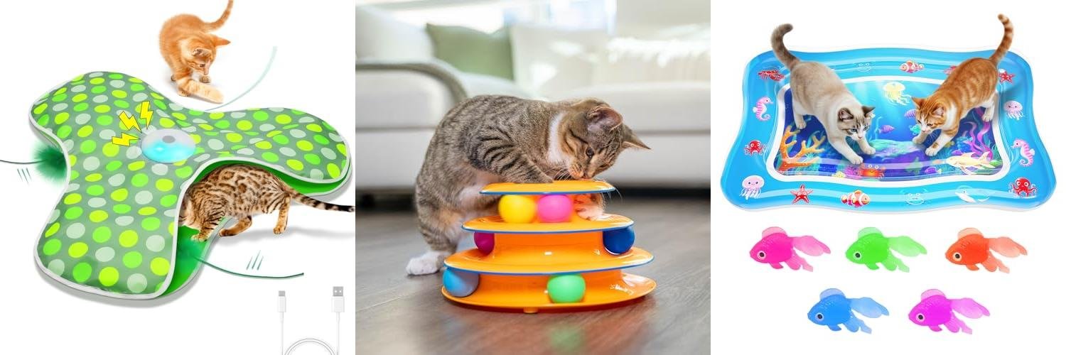 Interactive toys are great for different situations. If you’re busy, an automated toy can keep your cat entertained. If you want to bond with your cat, laser pointers or wand toys are perfect. Some toys are good for solo play, helping your cat exercise when you can’t play with them.
