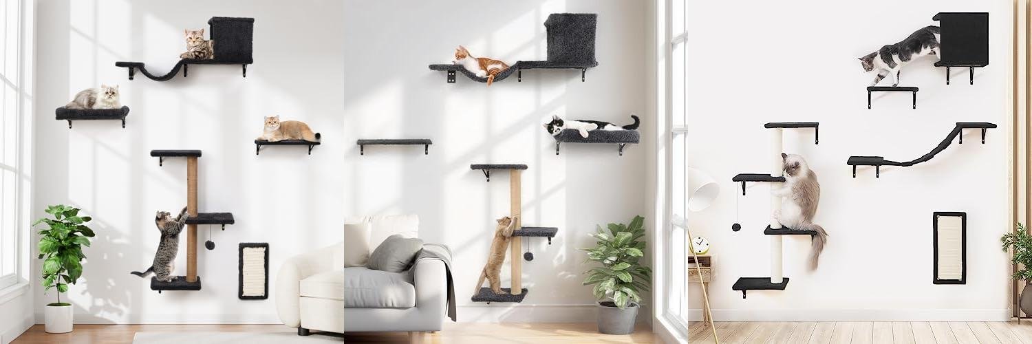 • You can get creative! The set comes with screws and instructions for easy installation. You can arrange the pieces in different ways and at heights perfect for your cat’s jumping ability. It fits well with many home styles.