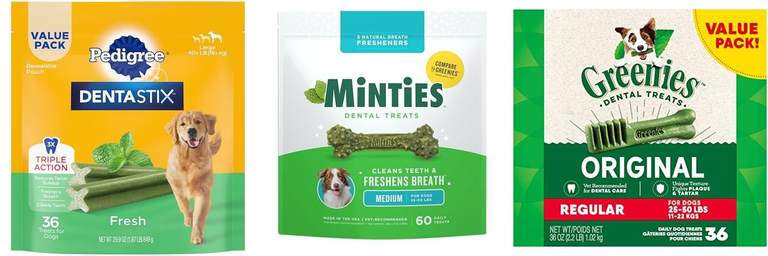 • Freshens Breath: Many dental chews have ingredients that fight bad breath. Mint or parsley are common additions.