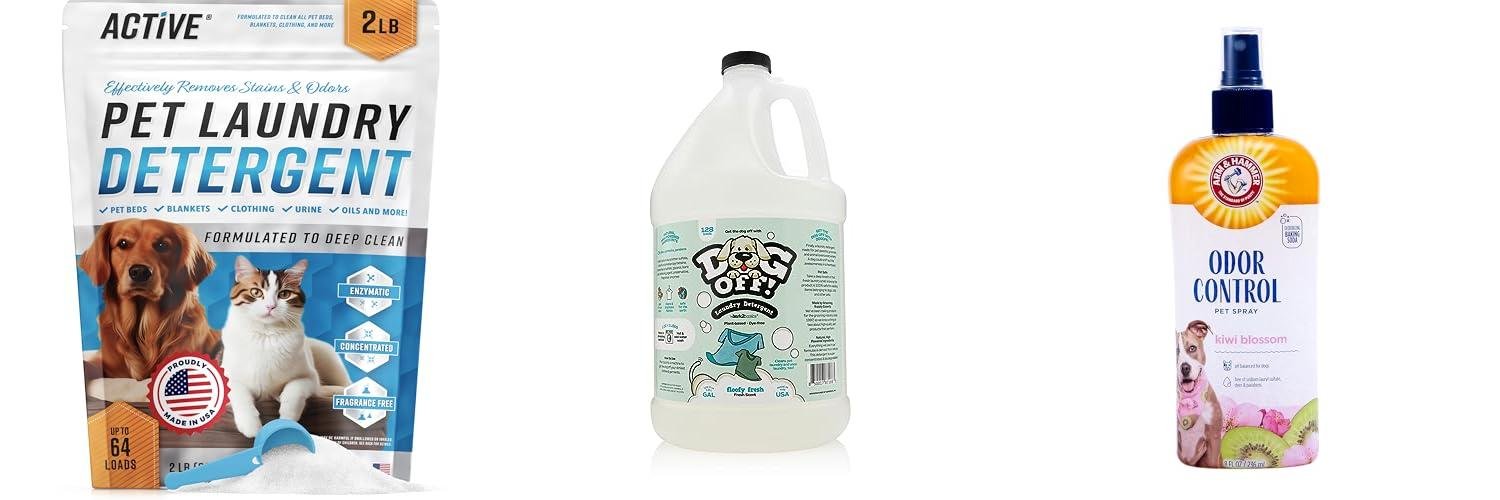 Many owners use spray detergents for a quick spritz on pet beds, blankets, or carpets after a walk, especially if their dog has been rolling in something less-than-pleasant.