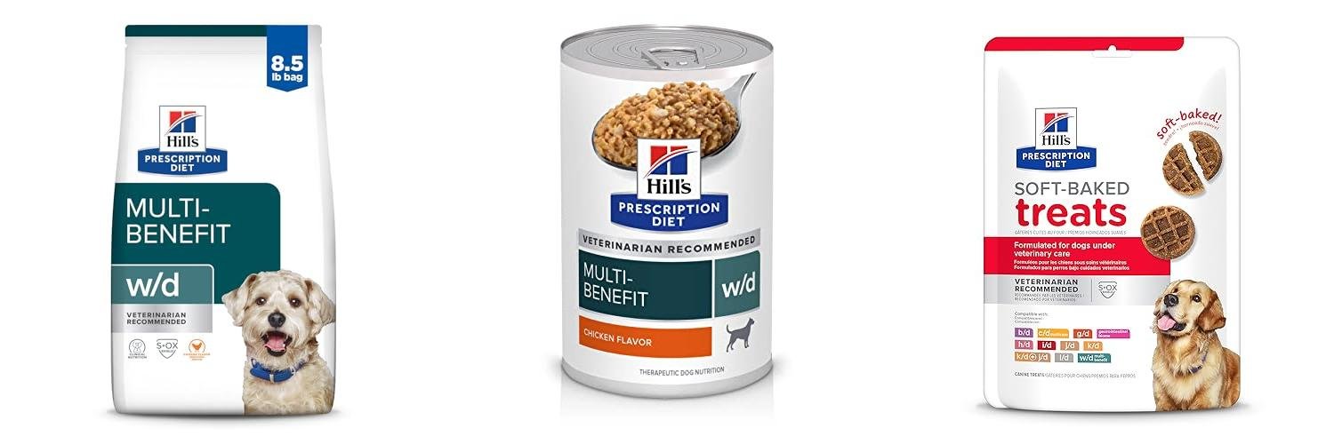 1. Hill’s Prescription Diet w/d Multi-Benefit Digestive/Weight/Glucose/Urinary Management Chicken Flavor Dry Dog Food