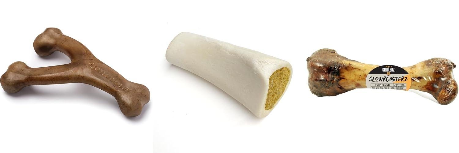 • Wood: Some “bones” are made from compressed wood. These can be a good natural option, but watch for splintering.