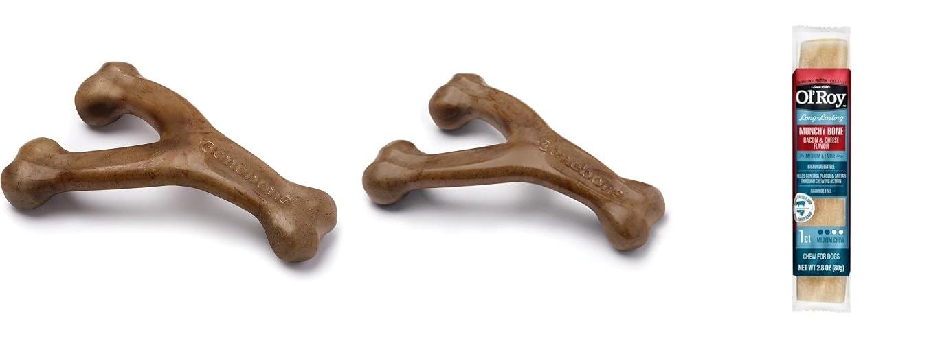 Look for bones made from safe materials. Avoid bones with sharp edges or small parts that can break off.