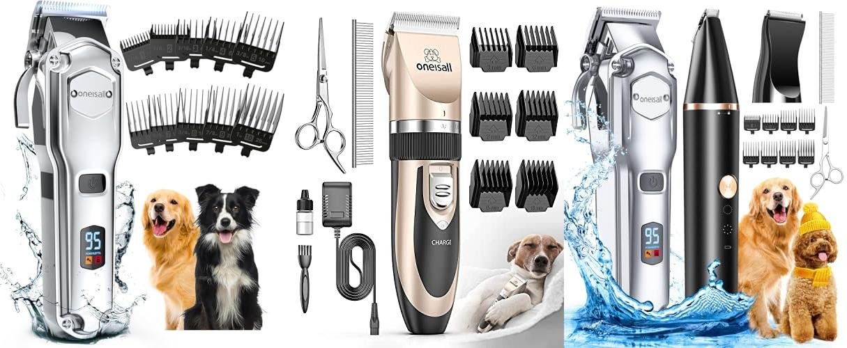 3. oneisall Dog Grooming Kit for Heavy Thick Hair&Coats/Low Noise Rechargeable Cordless Waterproof Dog Clippers for Grooming Animals&Pets/Pet Shaver with Stainless Steel Blade and Paw Trimmer