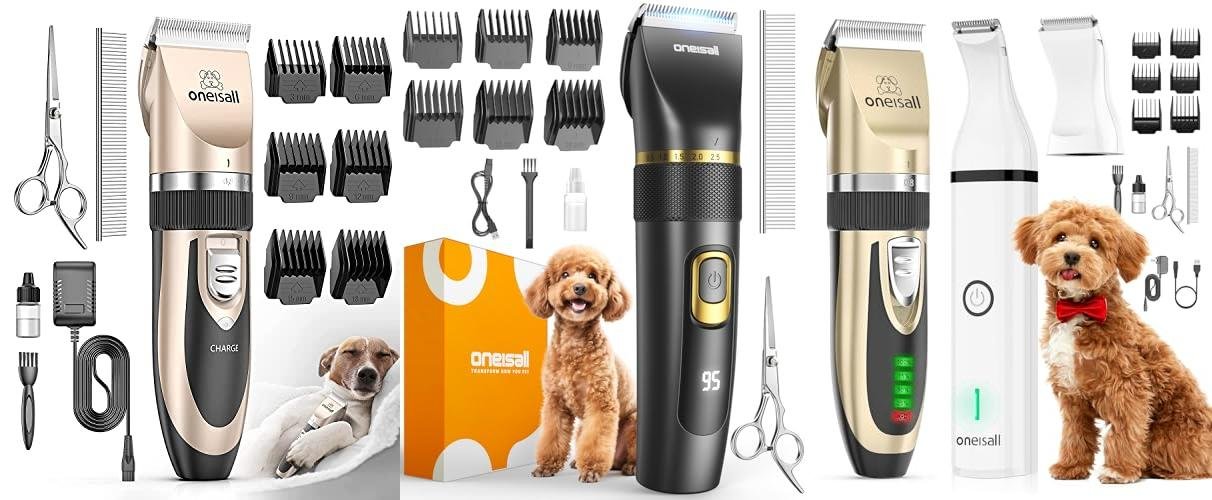 3. oneisall Dog Clippers and Paw Trimmer Kit 2 in 1 Low Noise Cordless Dog Clippers for Grooming Pet Hair Trimmers for Small and Large Dogs Cats Animals