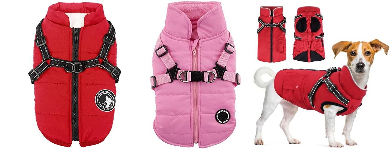 1. Gyuzh Dog Coat with Harness Puppy Coats Small Dog Harness Jacket Winter Waterproof Jackets for Smal Medium Large Dogs