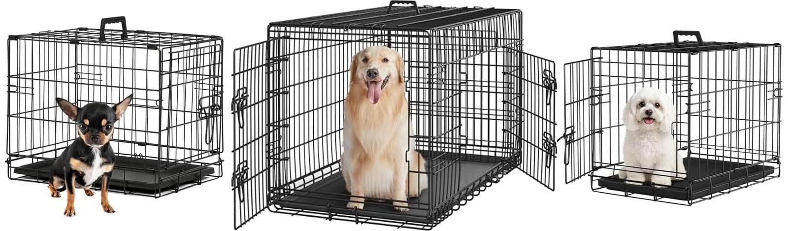 The Yaheetech 42 inch Double Door Dog Crate is a fantastic option for pet owners. It’s a strong metal kennel designed for dogs of all sizes, from tiny puppies to big adult XL dogs. This crate folds up easily and has a tray that catches messes, making it super convenient.