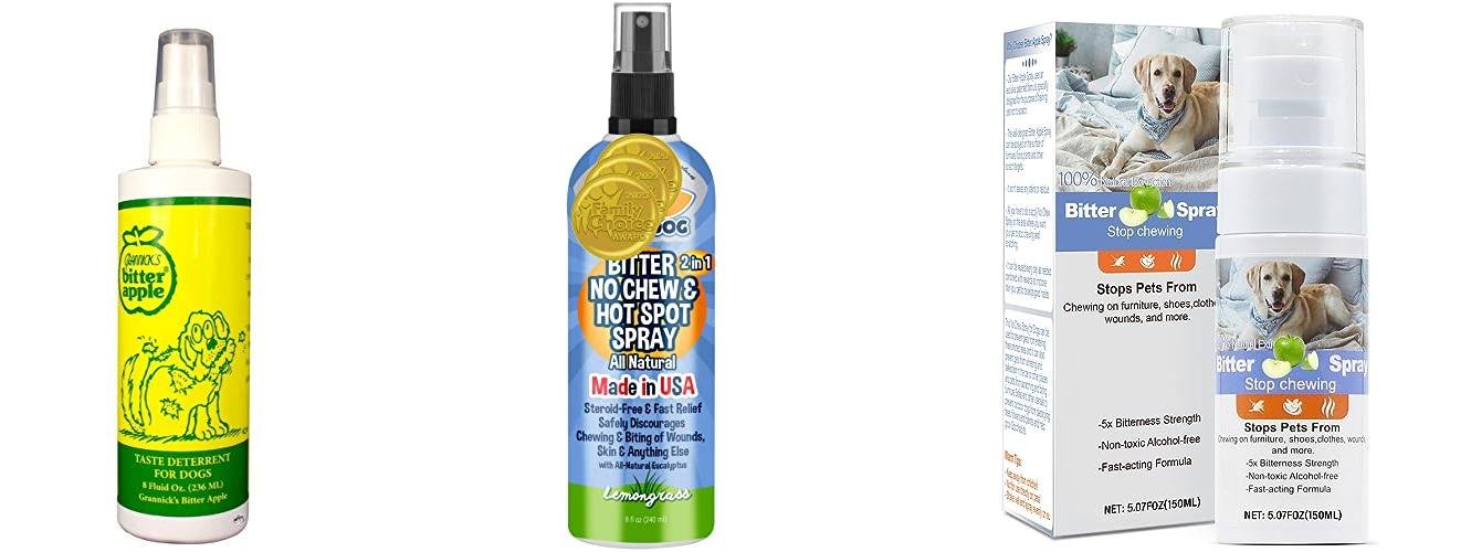 A: These sprays have a bitter taste that dogs dislike. When they try to chew an item sprayed with it, they get an unpleasant taste and learn to avoid chewing that item.