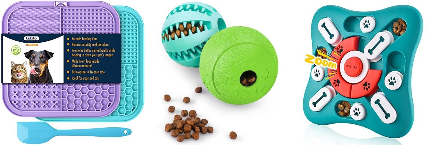 • Combating Boredom: When you can’t play with your dog, these toys keep them busy and prevent destructive behaviors. A treat-dispensing ball can keep a pup occupied for a good while.