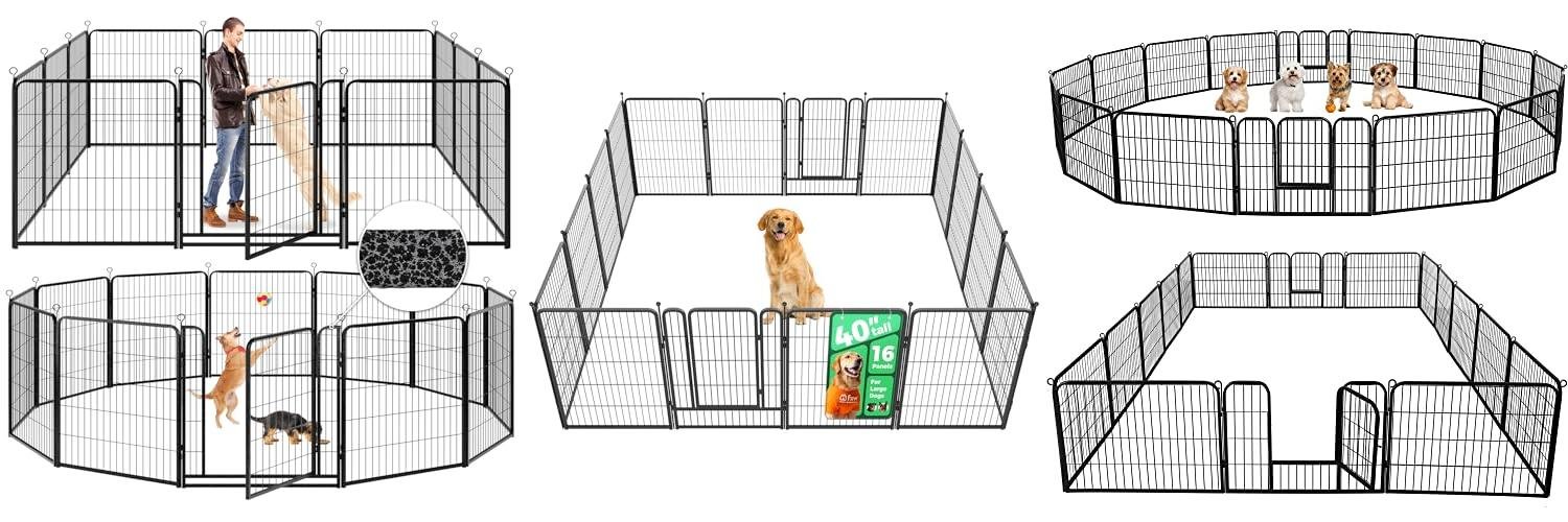 The Petorldog Dog Fence Outdoor Indoor, 40″ Inch Height 16 Panels Dog Playpen is a versatile and sturdy option for pet owners. It offers a safe space for your furry friends to play and relax, whether you’re at home, camping, or traveling in an RV.