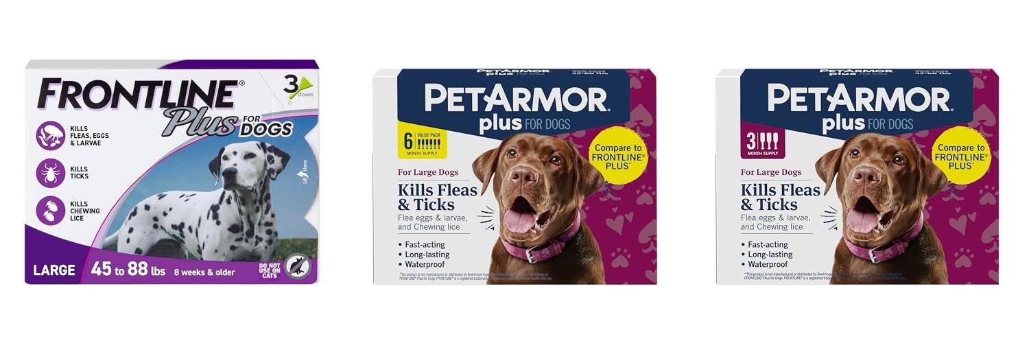 1. FRONTLINE Plus Flea and Tick Treatment for Large Dogs Up to 45 to 88 lbs. 3 Treatments