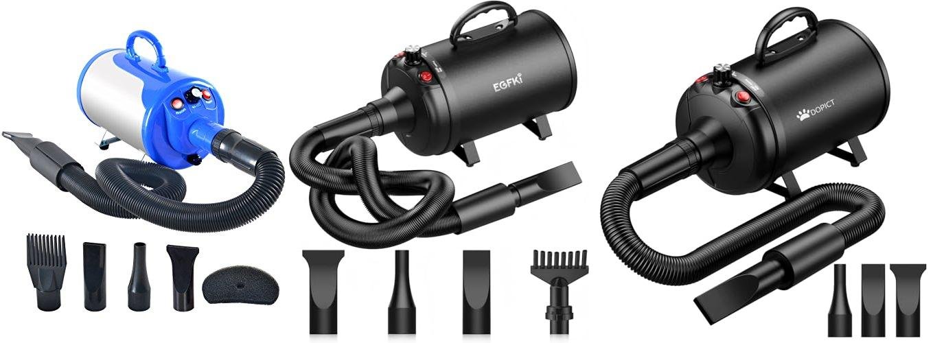 • Versatile Nozzles: Comes with 4 different nozzles for all your pet’s needs. You can even use it for other tasks like drying your car or furniture!