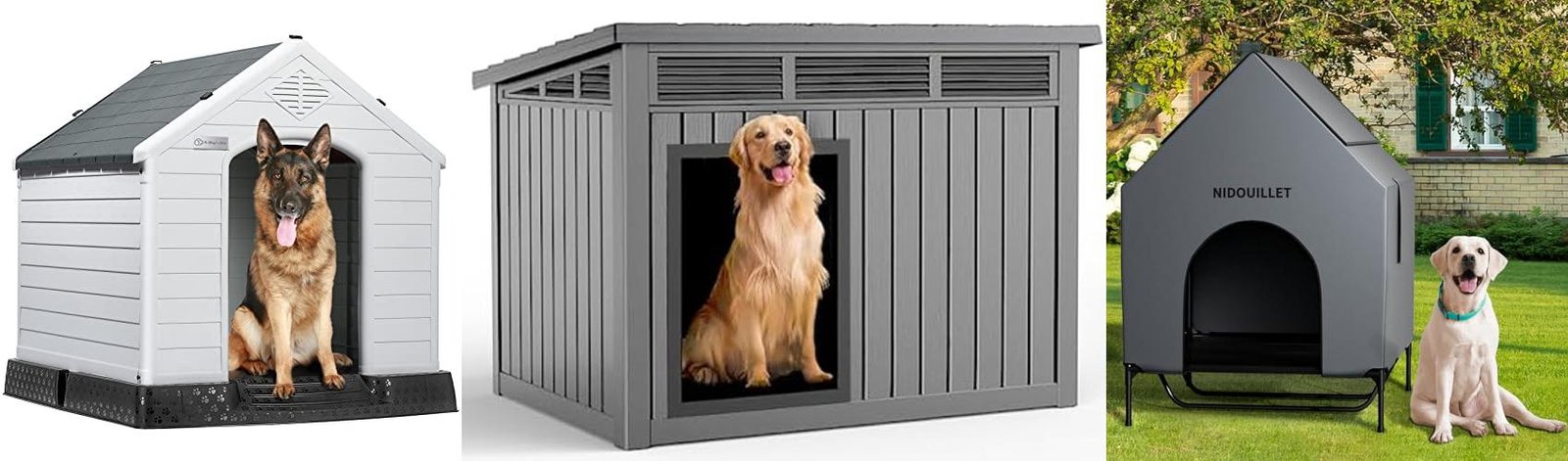 • Plastic: Plastic dog houses are lightweight and easy to clean. They are often waterproof. Some are insulated. Make sure the plastic is strong and won’t crack easily.