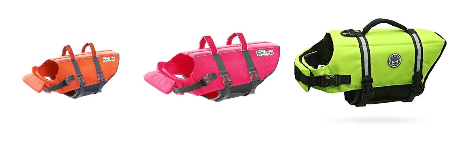 - The strong handle and D-ring make it easy to grab your dog quickly. Bright colors and reflective strips help you see them in the water, even when it’s dim.