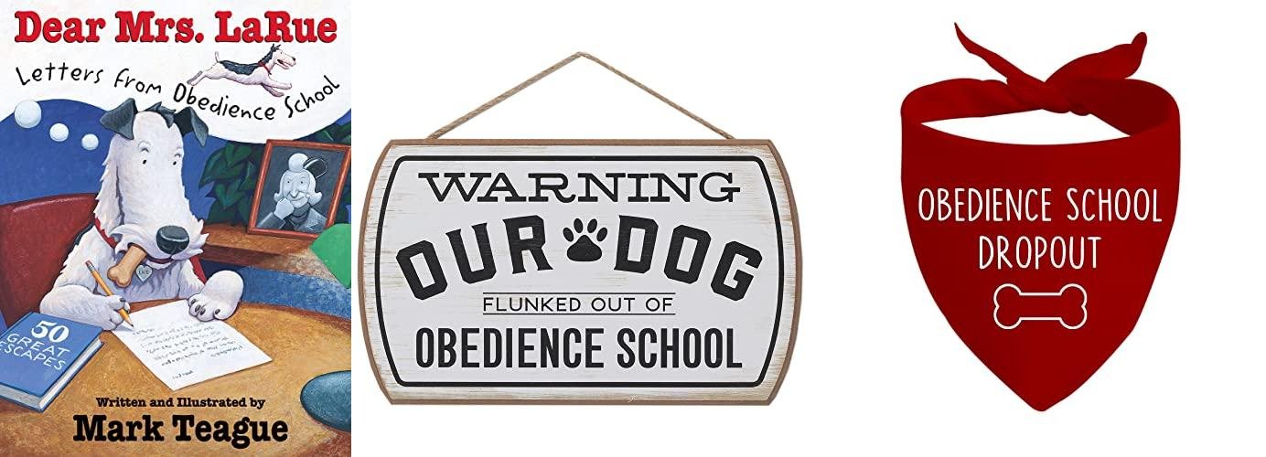 - It clearly states “Warning – our dog flunked out of obedience school,” which is hilarious.