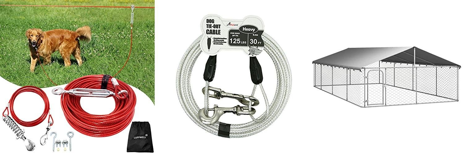 1. LUFFWELL 100FT Dog Runner for Yard with 15FT Tie Out Cable – Heavy Duty Trolley System for Large Dogs Up to 250LBS