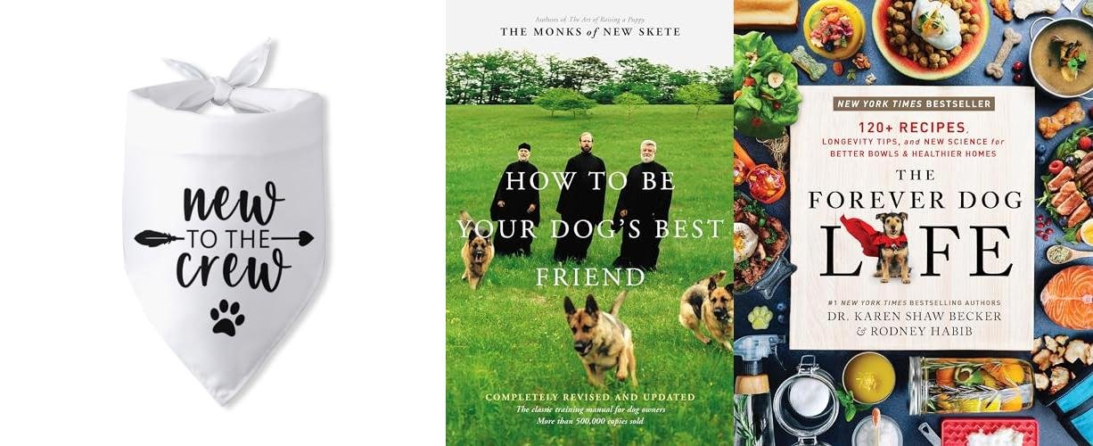 1. New to The Crew Dog Bandana New Puppy Announcement Gift for New Owners Puppy Bandana Dog Owner Gifts Triangle Bibs Scarf Accessories for Small Medium Dogs Pets