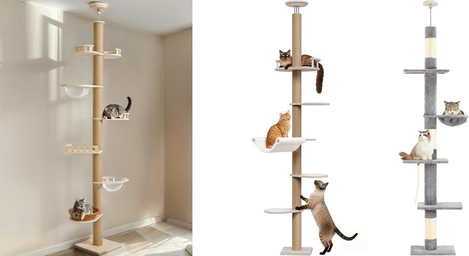 You’ve probably asked yourself: Is it tall enough? Will it stay put? Does it have enough scratching surfaces? These are all valid concerns that can make finding the right fit a real challenge. But don’t worry, we’re here to help! By the end of this post, you’ll feel confident in picking a floor-to-ceiling cat tree that your cat will absolutely adore. We’ll break down what makes a great one and guide you through the best options available.