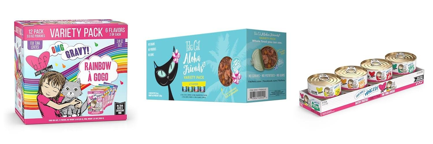 • Variety Pack Fun: The Batch O Besties pack lets your cat try four different delicious recipes.