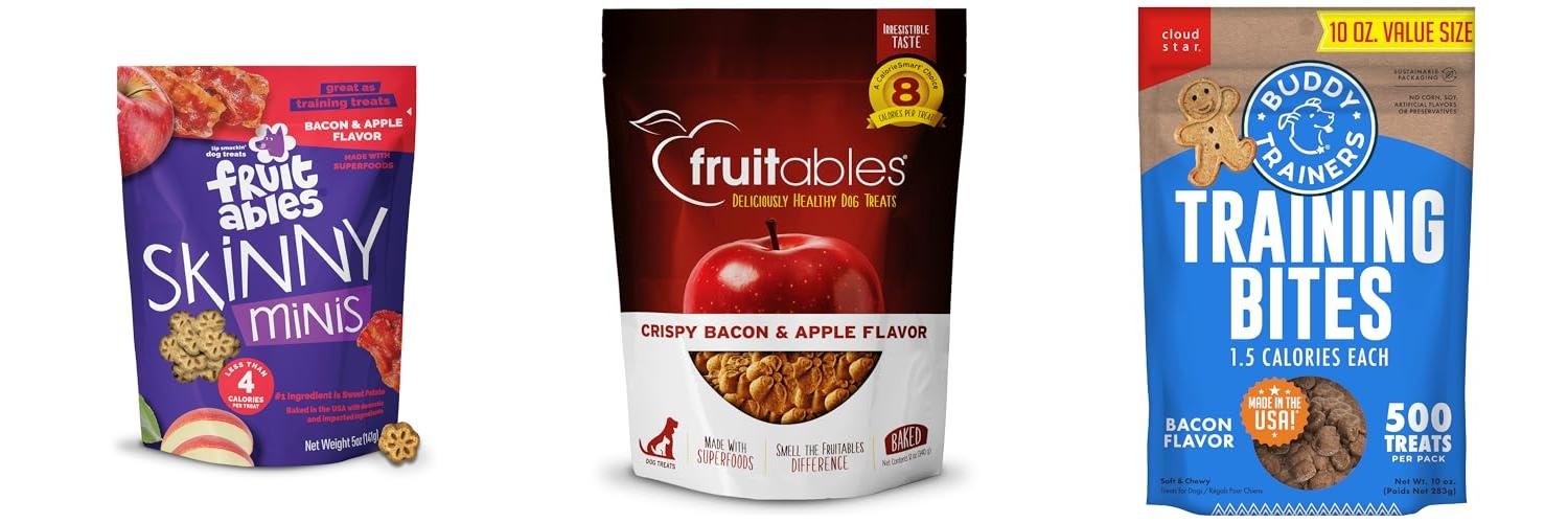 - These treats are super tasty with a yummy bacon and apple flavor that dogs go crazy for!