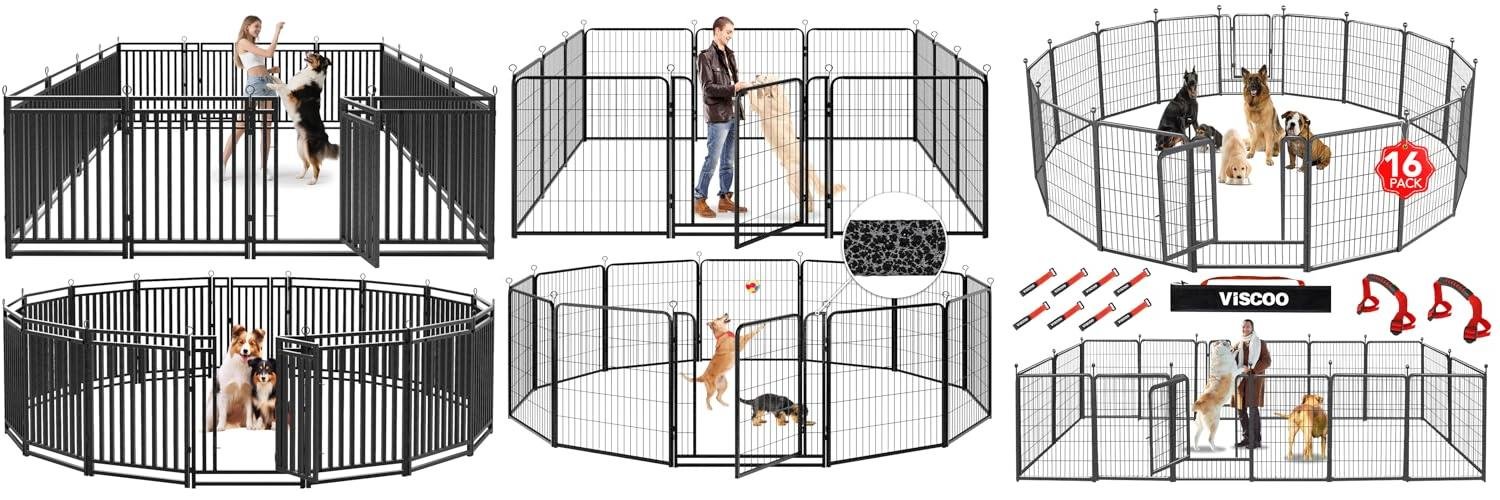 The VISCOO Dog Playpen Outdoor, 16 Panels 40″ High Metal Dog Fence with Gate, Pet Fence for Large/Small Dogs, Portable Dog Fence for RV Camping, Yard offers a versatile and secure space for your furry friends. It’s designed for both indoor and outdoor use, making it a flexible option for any dog owner.
