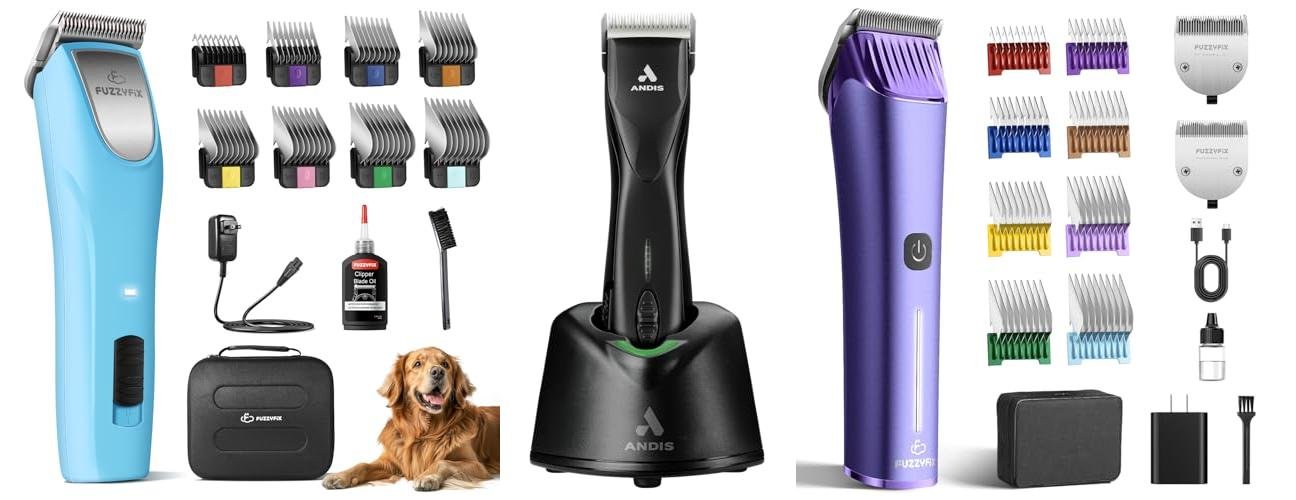 1. FuzzyFix Professional Dog Clippers for Grooming – 2 Speed Pet Grooming Kit for Thick Curly Matted Coats – Low Noise Heavy Duty Cordless Hair Trimmer with Detachable Metal Blade for Animal/Pet/Horse