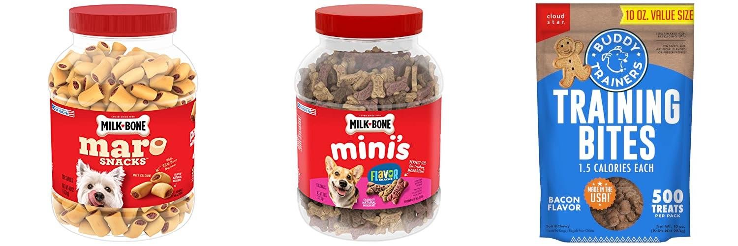 A: Small dog treats are usually smaller in size and easier for tiny mouths to chew. They also often have fewer calories per treat so you don’t overfeed your little dog.