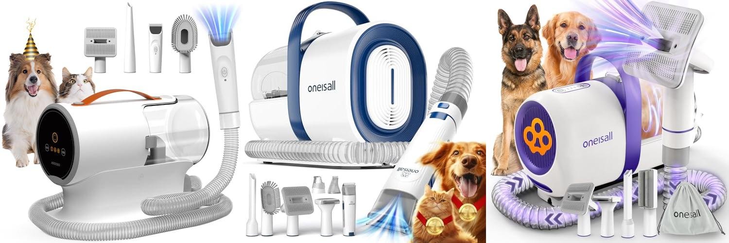 3. oneisall Dog Hair Vacuum & Dog Grooming Kit/Low Noise Dog Grooming Vacuum12kpa