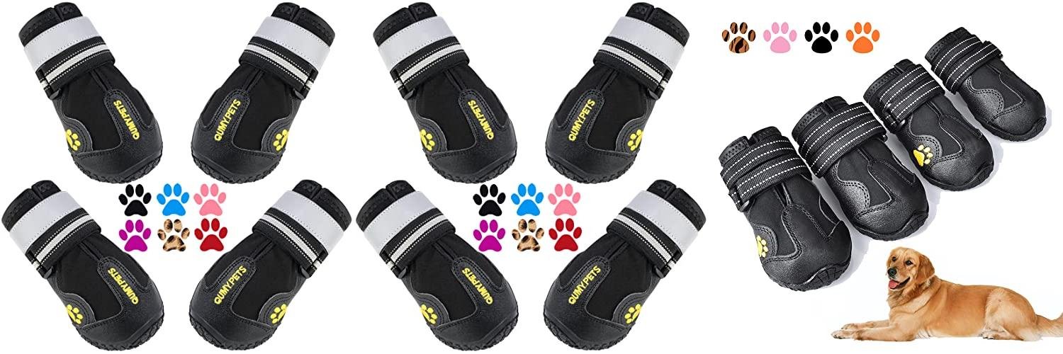 QUMY Dog Shoes for Large Dogs, Medium Dog Boots & Paw Protectors for Winter Snowy Day, Summer Hot Pavement, Water-Resistant in Rainy Weather, Outdoor Walking, Indoor Hardfloors Skid-Resistant Sole