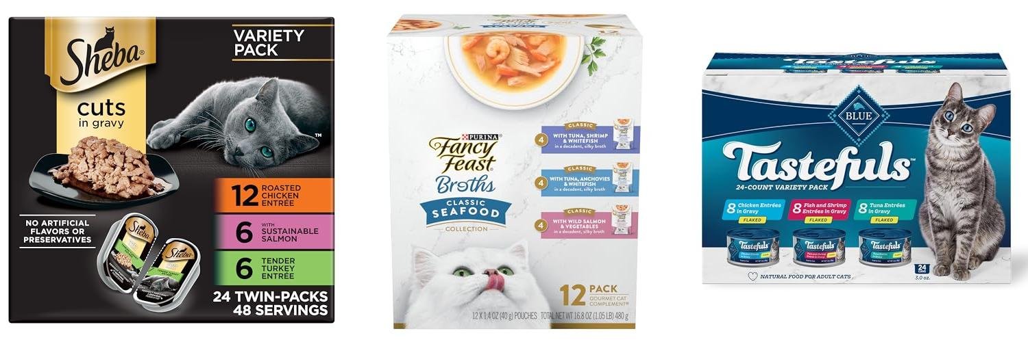 • The variety pack provides three different flavors to keep things interesting for your cat.